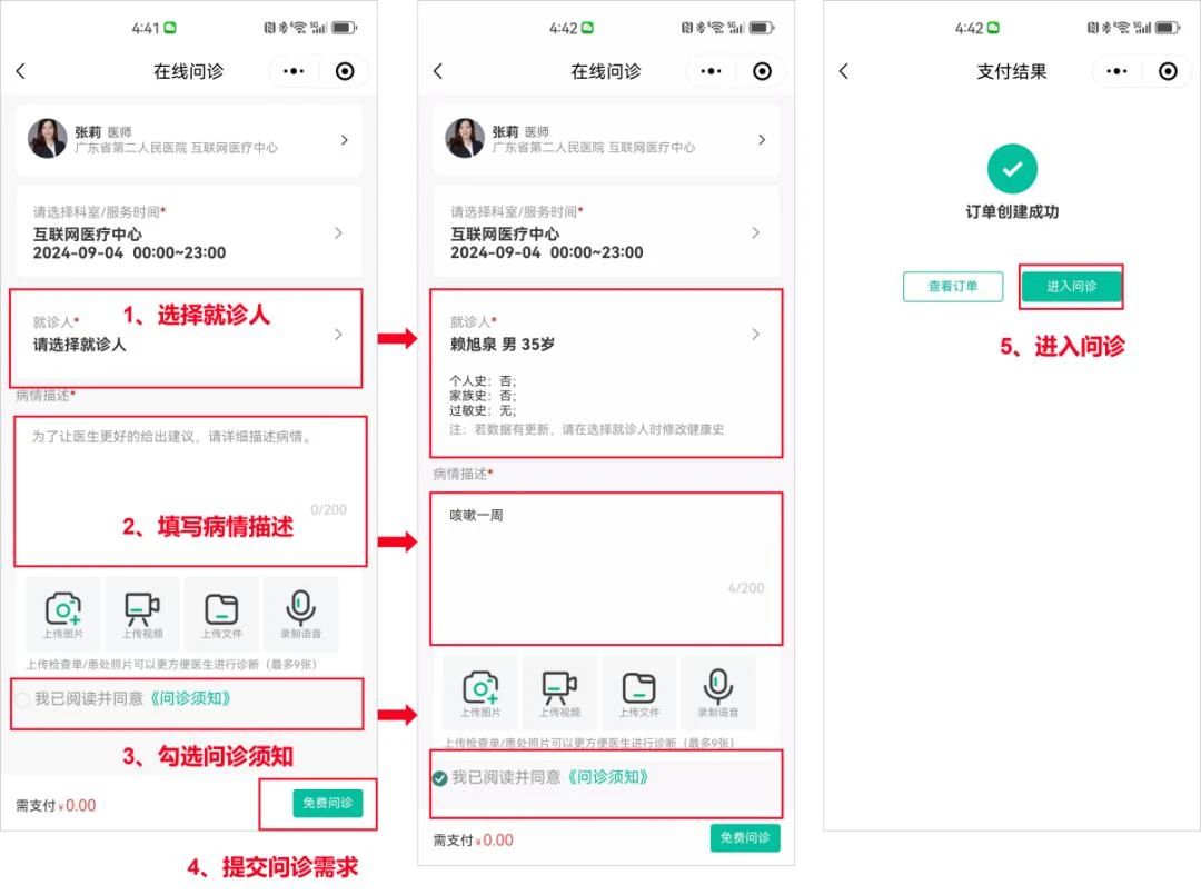 步驟四:提交問(wèn)診需求選擇醫(yī)生進(jìn)行咨詢后,填寫相關(guān)的問(wèn)診信息并提交問(wèn)診需求。提交后,選擇進(jìn)入問(wèn)診,耐心等待醫(yī)生接診。問(wèn)診過(guò)程中,用戶可以發(fā)送文字、圖片、語(yǔ)音或視頻與醫(yī)生交流。