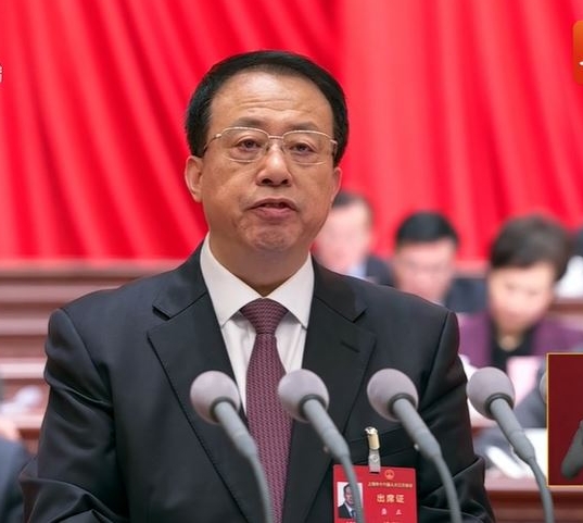 上海市長(zhǎng)龔正在市人大作政府工作報(bào)告。