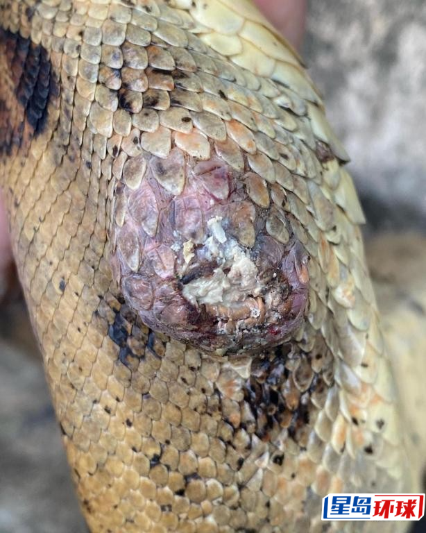 李詠豪早前于城門(mén)郊野公園捕獲1條身軀受傷、疑遭棄養(yǎng)的紅尾蚺。
