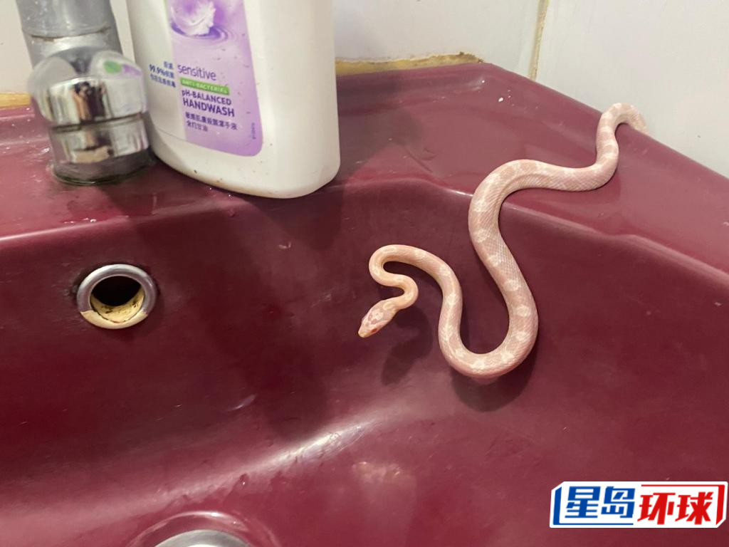 ▲1條懷疑走失的白粟米蛇,潛入公屋單位,咬傷男住客。