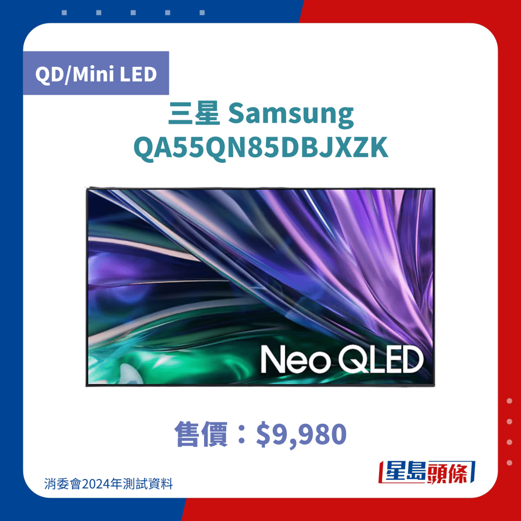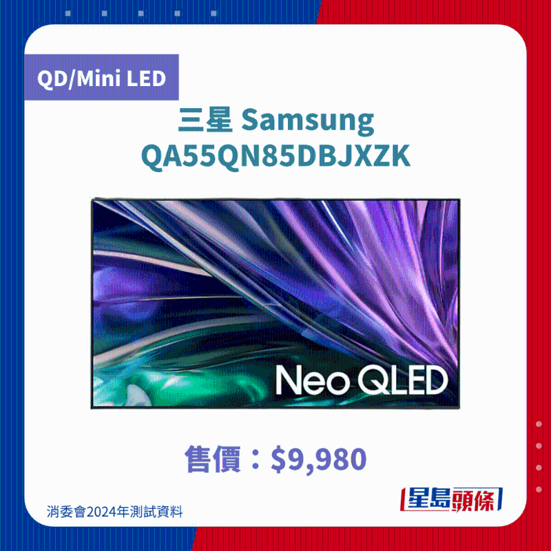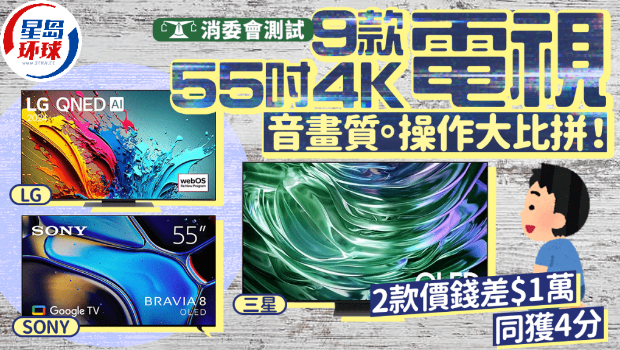 消委會(huì)測(cè)試9款55寸4K電視,這2款價(jià)錢差$1萬(wàn)同獲4分