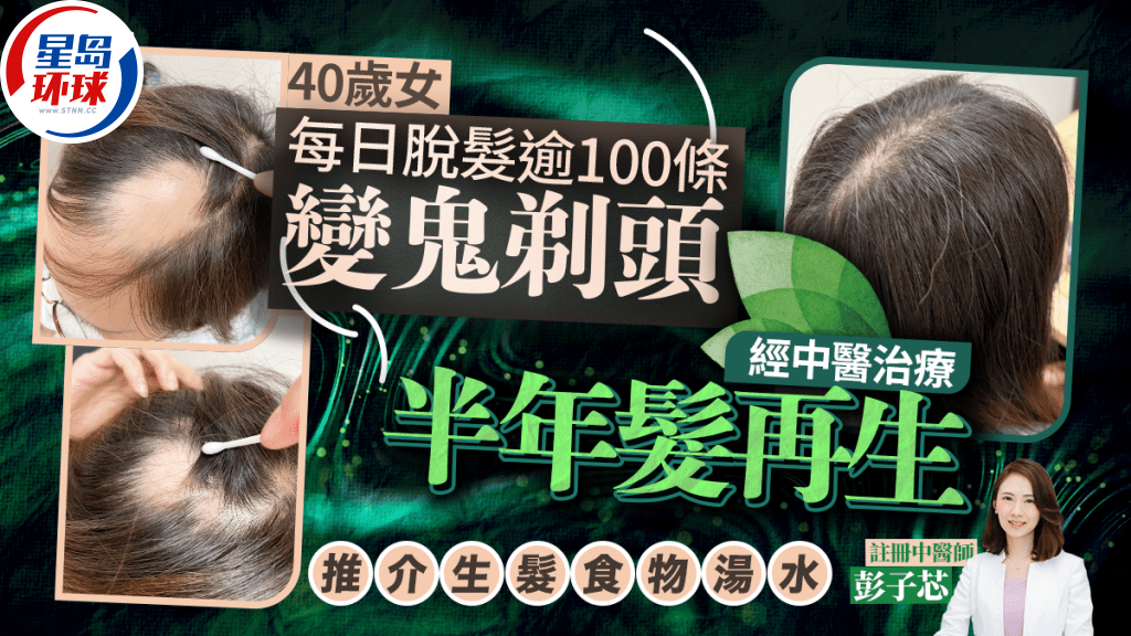 嚴(yán)重脫發(fā)問題令人感困擾。注冊中醫(yī)師彭子芯向《星島》分享斑禿病例指,香港一名40多歲的女子,持續(xù)脫發(fā)長達(dá)一年,每日掉發(fā)超過100條,更因此出現(xiàn)情緒問題。后來經(jīng)過大半年的中醫(yī)治療,重新長出黑發(fā),情況大有改善。究竟哪些人容易有斑禿問題?吃什么生發(fā)?