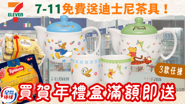 7-Eleven再度推出優(yōu)惠,買新春賀年禮盒滿$198即送迪士尼限量版趣致茶具。 (7-Eleven圖片)