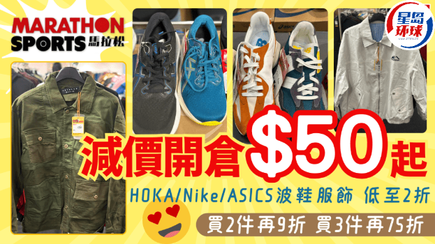 銅鑼灣馬拉松開倉!HOKA/Nike/ASICS波鞋服飾2折$50起,買2件再9折+買3件再75折