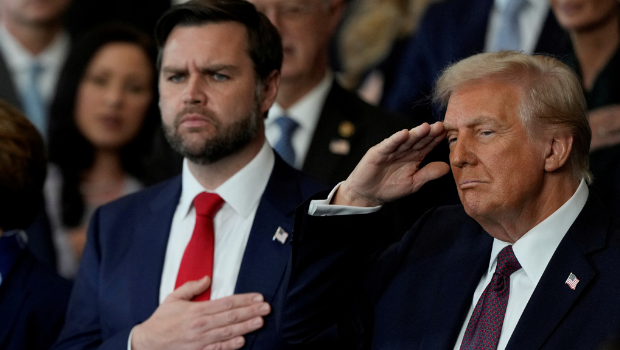 2025年1月20日,美國總統(tǒng)特朗普和副總統(tǒng)萬斯在國會大廈就職典禮上聆聽馬基奧的演唱。