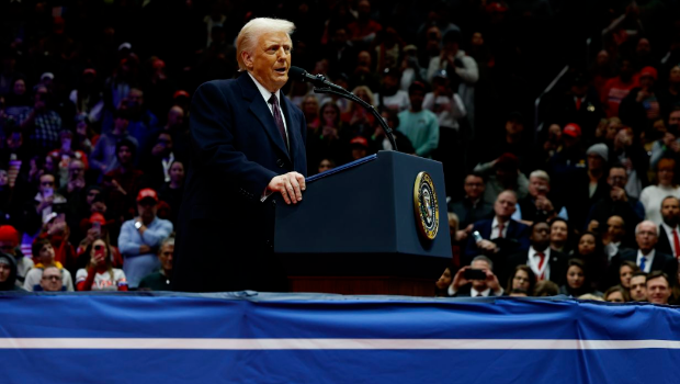 ▲當?shù)貢r間1月20日,特朗普在美國首都第一資本體育館發(fā)表講話。圖源:美媒