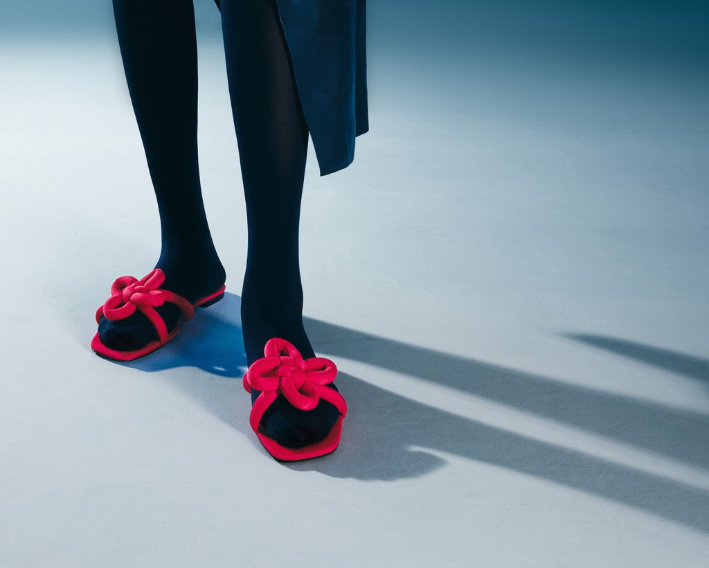 ▲Jade中國(guó)結(jié)紅色平底拖鞋。 $ 399/Charles&Keith