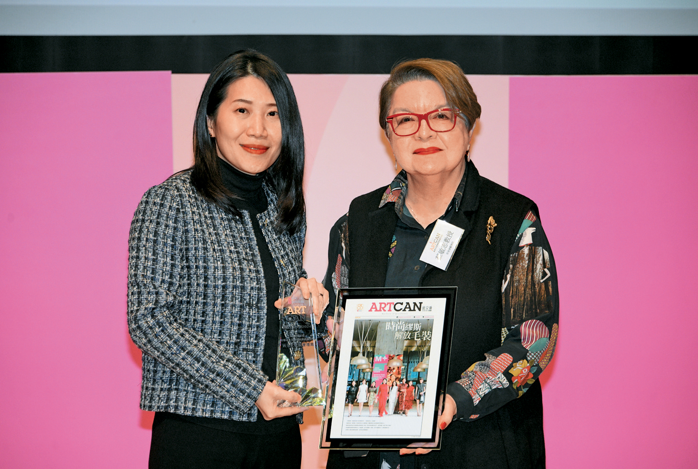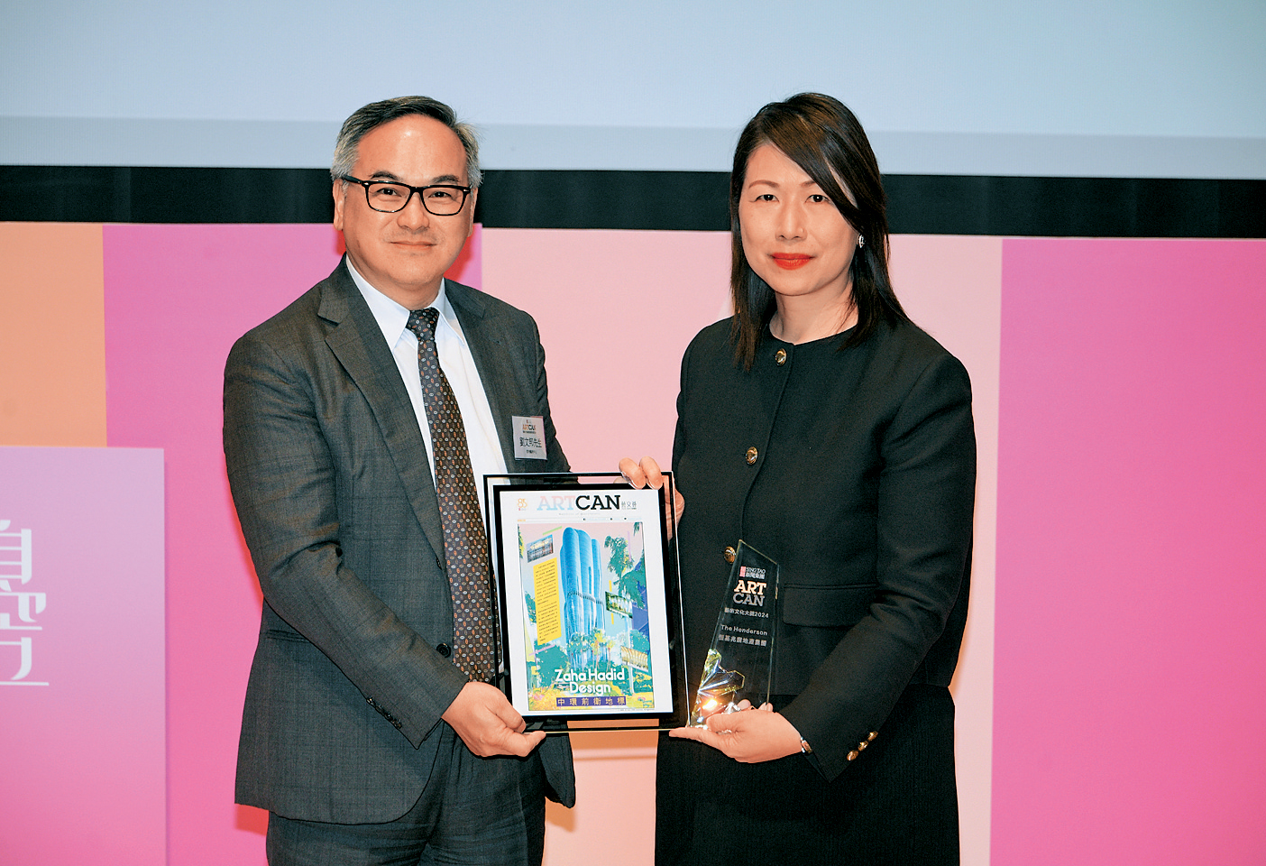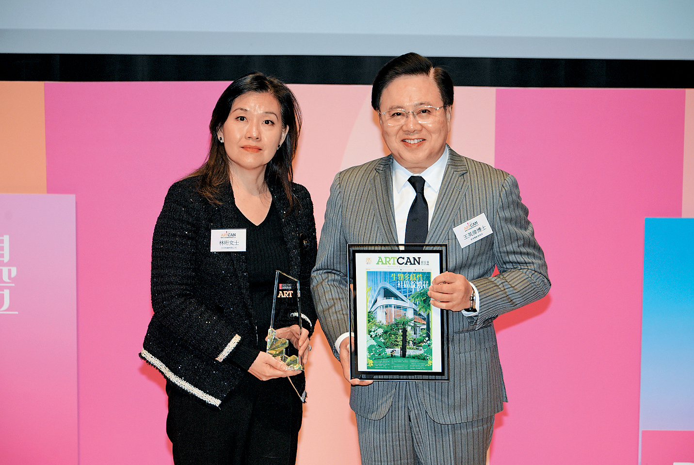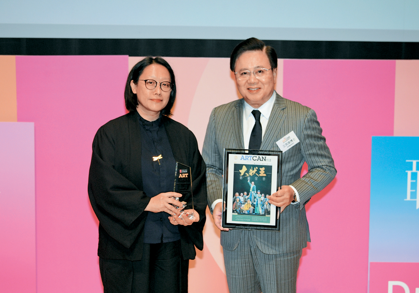 ▲蔡敏志頒發(fā)獎(jiǎng)座予獲獎(jiǎng)機(jī)構(gòu)代表西九文化區(qū)管理局市場(chǎng)推廣、數(shù)碼及訪客體驗(yàn)總監(jiān)周惠珊(左)。
