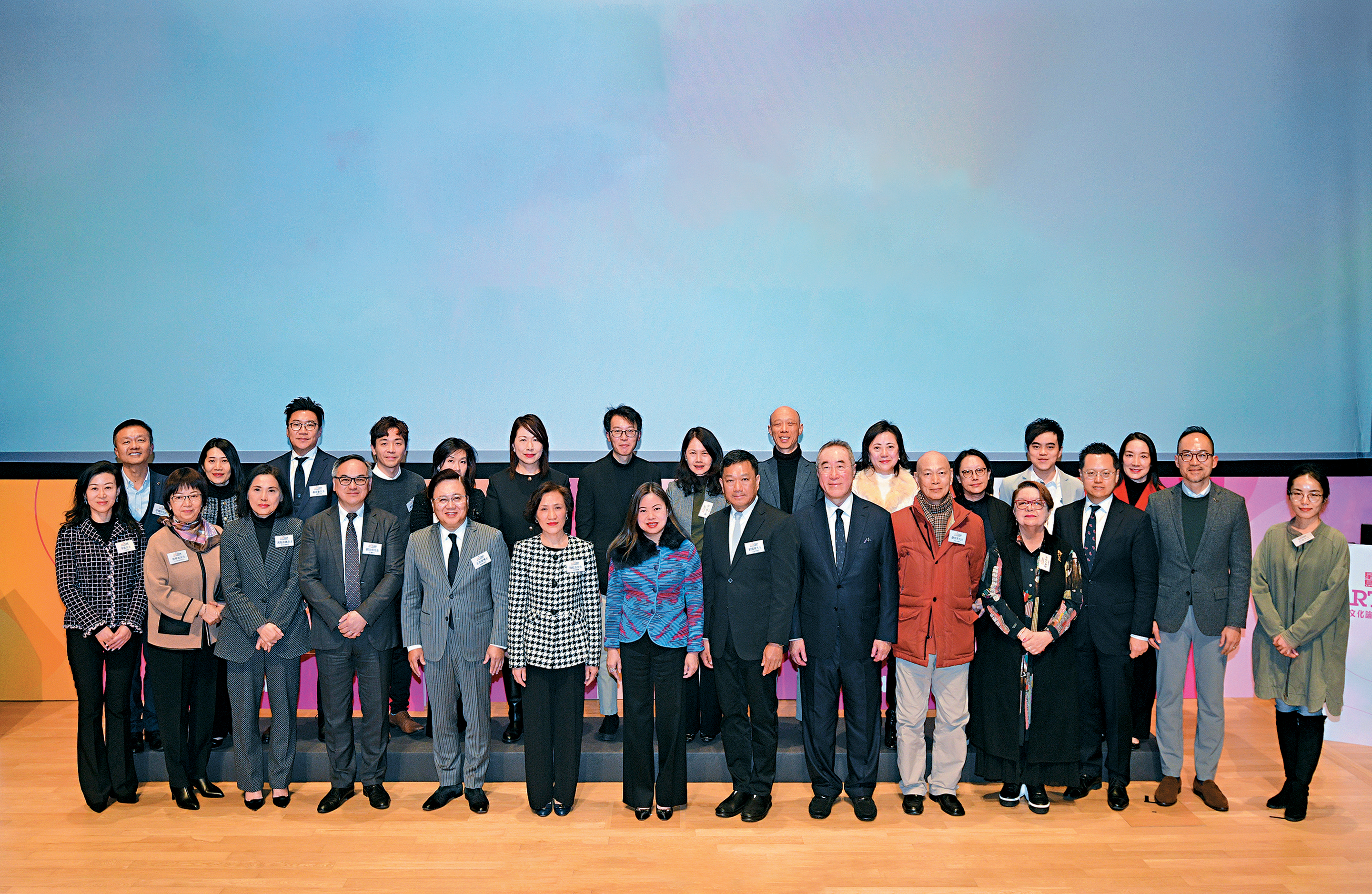 ▲活動(dòng)主禮嘉賓文化體育及旅游局局長(zhǎng)羅淑佩(左七)、專題演講嘉賓西九文化區(qū)管理局行政總裁馮程淑儀(左三)、部分評(píng)審團(tuán)成員、10個(gè)獲獎(jiǎng)機(jī)構(gòu)代表及支持機(jī)構(gòu)代表合照。