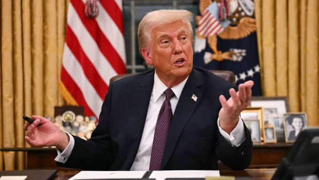 ▲特朗普20日在白宮橢圓形辦公室簽署行政命令時(shí)對(duì)記者發(fā)表談話。(法新社)