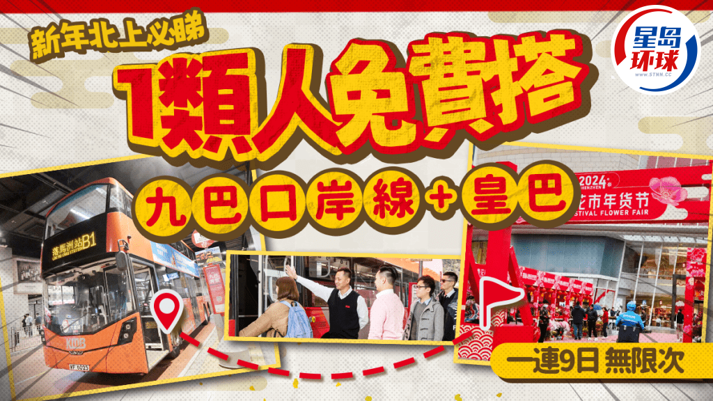 農(nóng)歷新年將至,為了讓市民能夠更方便地來往深圳及香港拜年探親,九巴及皇巴士推出新年限定優(yōu)惠,1類人士可于1月25日(年廿六)至2月2日(年初五)期間,免費乘搭4條接駁口岸的九巴路線及皇巴士,此外,九巴及龍運巴士亦會加強多條邊境管制站及相關(guān)路線服務(wù),以便乘客新春出外旅游!