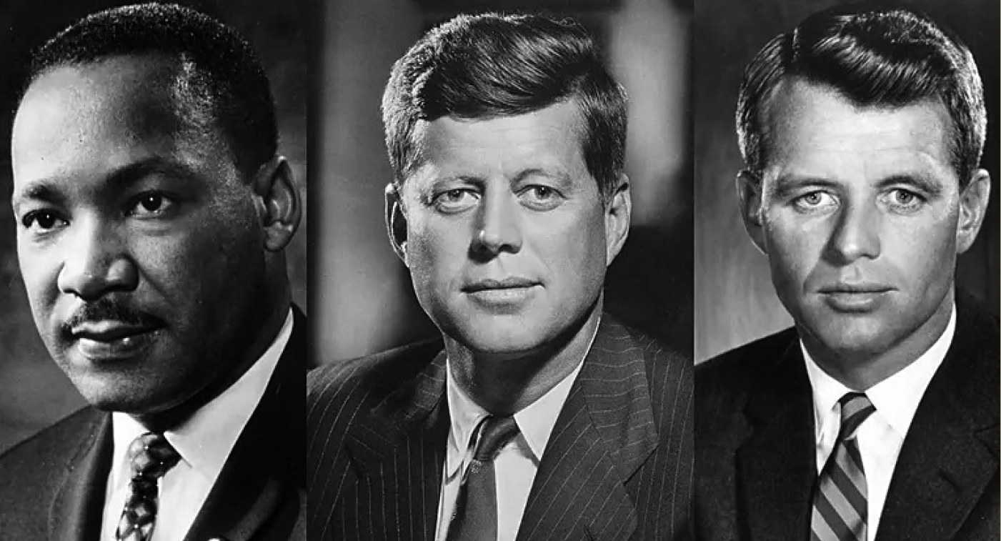 肯尼迪總統(tǒng)1963年11月在德州達(dá)拉斯遇刺身亡,終年46歲。其弟弟羅伯特肯尼迪1968年6月競(jìng)逐總統(tǒng)時(shí)遭遇同樣命運(yùn),終年42歲。馬丁路德金則在1968年4月,于田納西州孟菲斯遭遇槍擊,喪生時(shí)39歲。