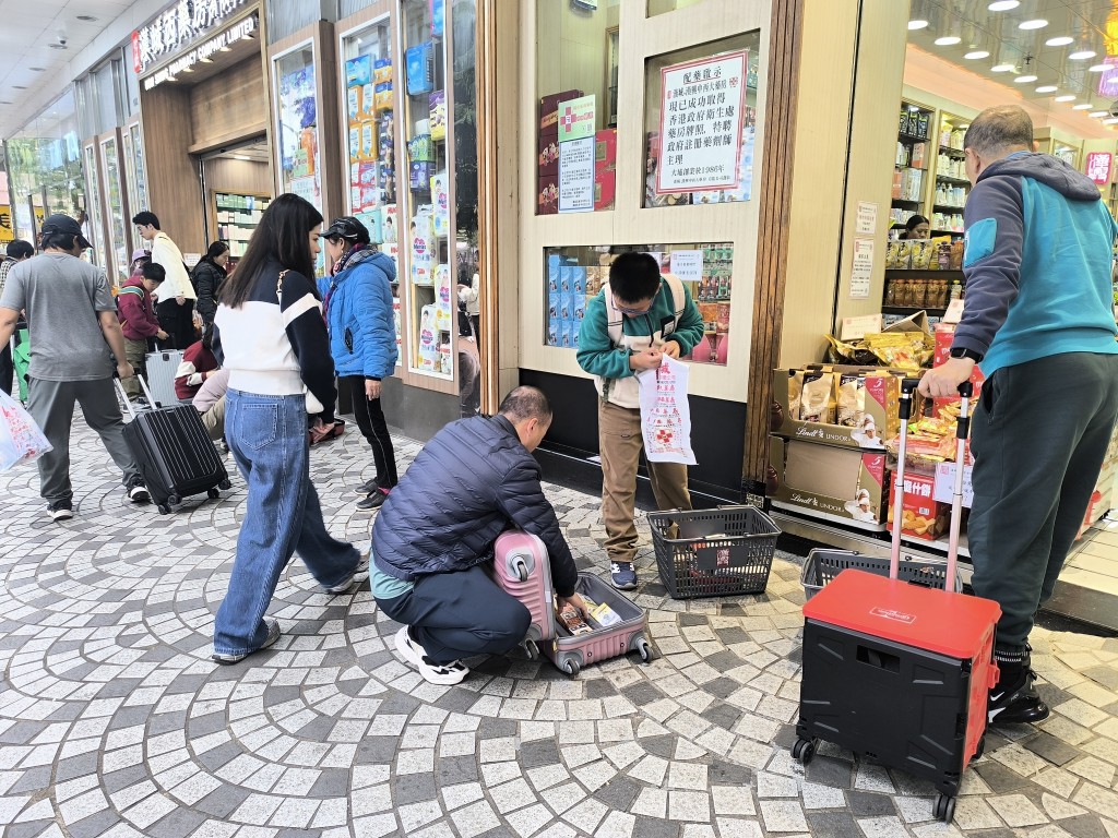 該間超市經(jīng)理透露,近期人流增多,不少是帶同行李箱前來(lái),加上臨近歲晚,不少人辦年貨,營(yíng)業(yè)額比去年同期最少增加3成。