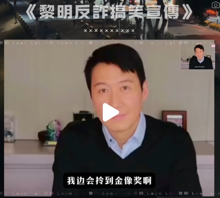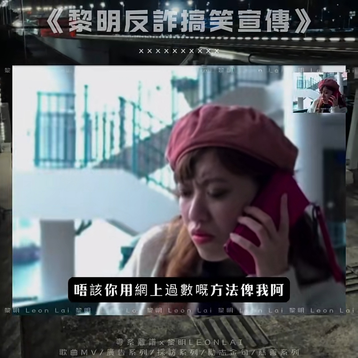 片中可見(jiàn),一名女子收到“黎明”的求助錄音,男子的聲音與黎明本人非常相似,他表示:“我系黎明,我喺內(nèi)地畀富婆操控,逼我拍劇,唔該你用網(wǎng)上過(guò)數(shù)方法畀我……當(dāng)系贖金,畀我脫身返嚟香港參加金像獎(jiǎng)?!苯勇?tīng)錄音的女子表示:“癡線,你估我會(huì)幫你呀?當(dāng)我傻人呀?”但她思考過(guò)后,覺(jué)得對(duì)方聲音實(shí)在太似黎明,最終都交付了“贖金”,更心心眼似乎想等待黎明多謝她,最終她被騙徒封鎖。其實(shí)這條影片是2019年黎明為“反詐騙協(xié)調(diào)中心”拍攝的反詐騙廣告,提醒市民要小心變聲詐騙電話、錄音等,以防受騙。