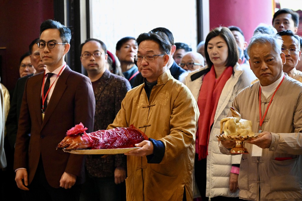 儀式于上午近8時(shí)開(kāi)始,一眾代表叩首、上香。出席者包括劉業(yè)強(qiáng)、沙田鄉(xiāng)事委員會(huì)主席莫錦貴、立法會(huì)議員李世榮及容海恩等。