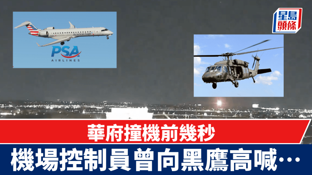 墜機前不到30秒,空中交通管制員詢問軍用直升機是否看到即將抵達的飛機。不久之后,管制員再次向直升機發(fā)出無線電呼叫:“PAT 25 pass behind the CRJ”,(意思是要軍方的直升機從客機后面經(jīng)過)。幾秒鐘后,兩架飛機相撞。