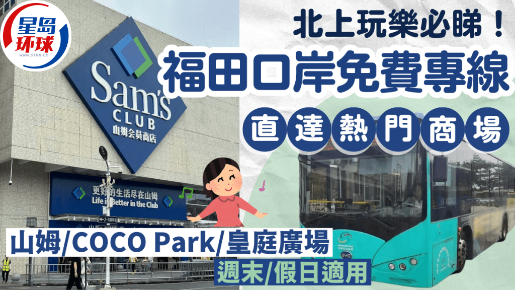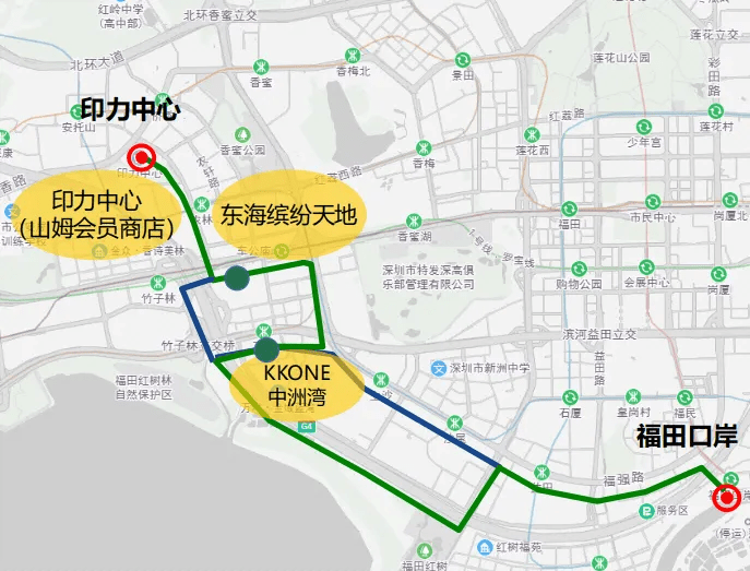 免費(fèi)接載乘客前往福田區(qū)熱門商圈,途經(jīng)印力中心(山姆會員店)、卓悅中心、皇庭廣場、COCO Park等備受港人熱捧的商場