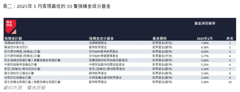 ▲2025年1月表現(xiàn)最佳10只強(qiáng)積金成分基金