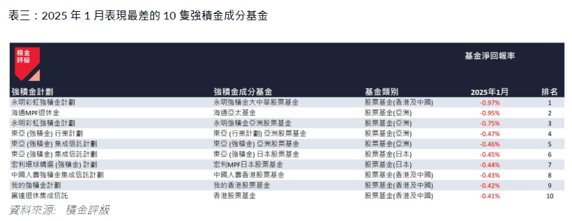 ▲2025年1月表現(xiàn)最差10只強(qiáng)積金成分基金