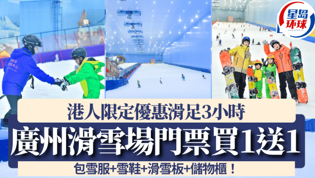 近日廣州熱雪奇跡滑雪場推出港人限定門票優(yōu)惠,于2月7日晚上9時起,只要透過Klook預訂即可享買1送1,3小時初級道滑雪門票只需$427起,即平均每小時$142即可任玩2條滑雪道,更可免費借用滑雪服、滑雪鞋、頭盔、滑雪板、滑雪杖等滑雪裝備以及儲物柜,不可錯過!