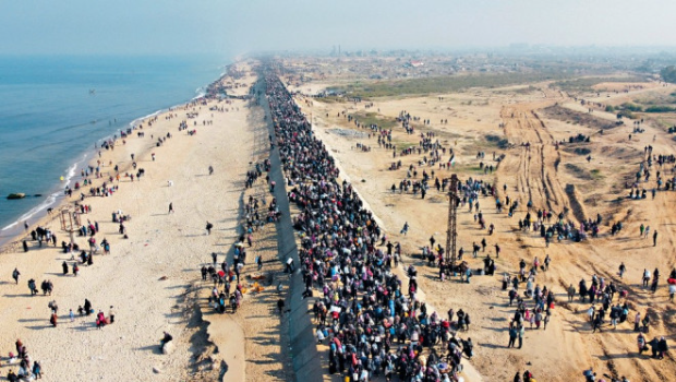 ▲上月27日由無(wú)人機(jī)拍攝畫(huà)面可見(jiàn),曾被逼遷徙至加沙南部的大批巴人,正返回加沙北部的家園。