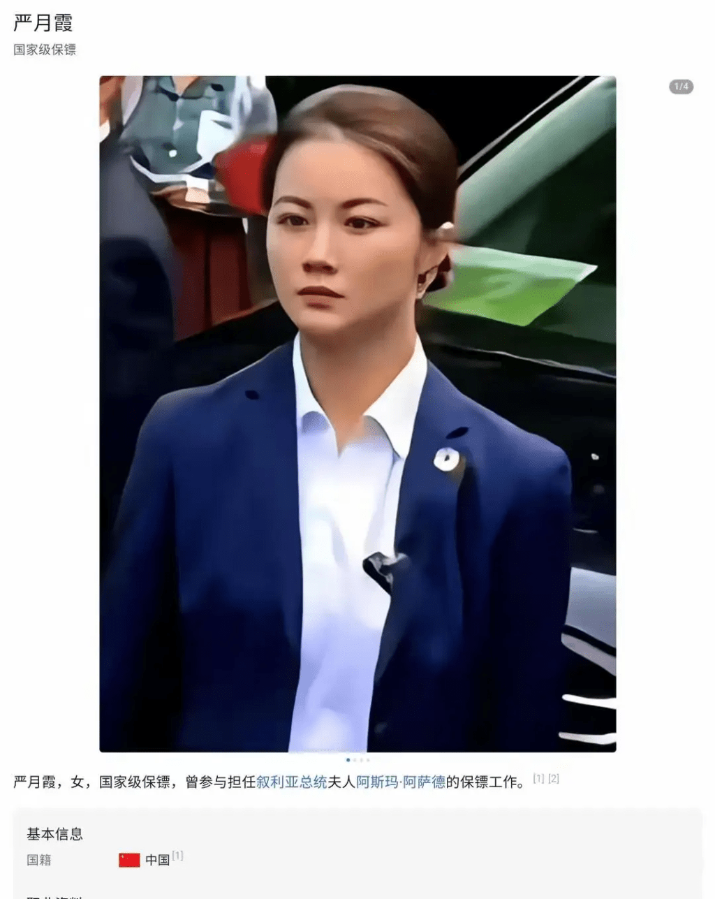 出生于河南武術(shù)世家,嚴(yán)月霞從小就展現(xiàn)出了對(duì)武術(shù)和搏擊的濃厚興趣,憑借著超乎常人的毅力和努力,她在武術(shù)領(lǐng)域不斷深耕,曾進(jìn)入少林寺深造,練就了一身本領(lǐng)。 她以優(yōu)異的成績(jī)考入北京體育大學(xué)武術(shù)專業(yè),更曾打敗過5位日本空手道冠軍。 武林中人皆對(duì)這位天才欽佩不已,尊稱她為“河南花木蘭”。 嚴(yán)月霞成年后曾參軍,軍旅生涯更讓她學(xué)會(huì)了射擊、徒手搏擊、反監(jiān)視防護(hù)等技能,從單純的武術(shù)愛好者成長(zhǎng)為全方位的格斗高手。 退伍后,嚴(yán)月霞更成為中南海保鏢。 2023年杭州亞運(yùn)會(huì)期間,嚴(yán)月霞迎來了職業(yè)生涯中的一項(xiàng)重大任務(wù)——隨護(hù)敘利亞第一夫人阿詩(shī)瑪,當(dāng)時(shí)就因清秀絕美側(cè)顏,引起關(guān)注。