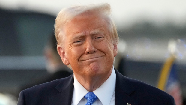 ▲美國總統(tǒng)特朗普7日搭乘空軍一號專機飛抵佛州棕櫚灘的神情。(美聯(lián)社)