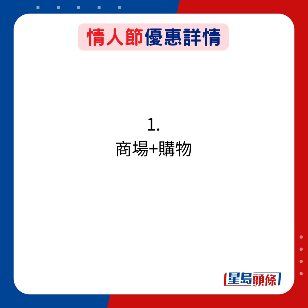 ▲情人節(jié)優(yōu)惠詳情:1. 商場(chǎng)+購(gòu)物