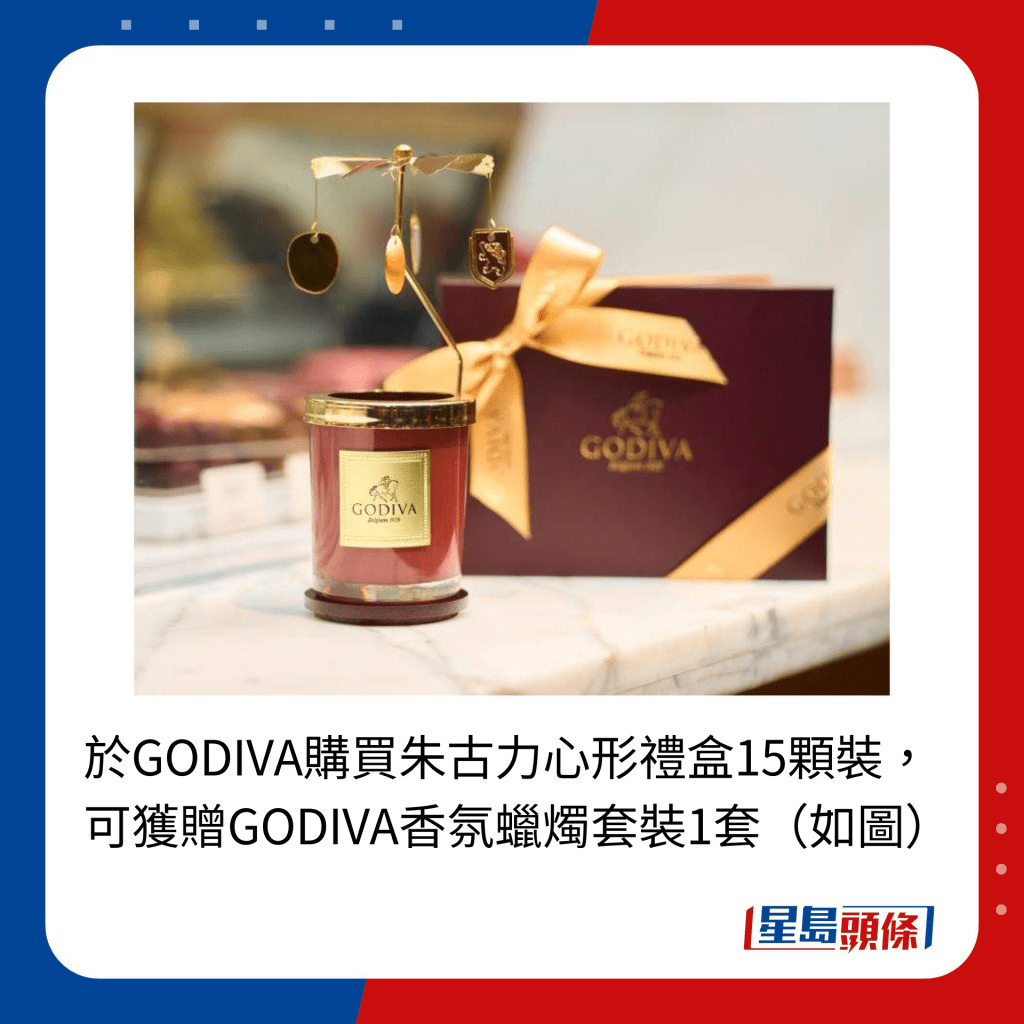 ▲于GODIVA購(gòu)買朱古力心形禮盒15顆裝,可獲贈(zèng)GODIVA香氛蠟燭套裝1套(如圖)。