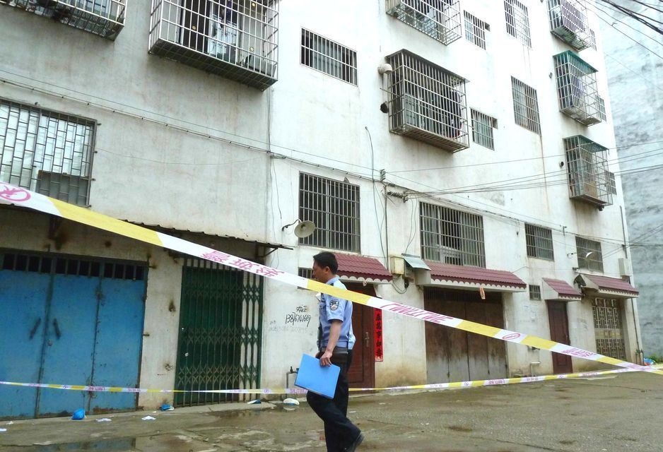 ▲警方封鎖周子雄一家四口被滅門的現(xiàn)場調(diào)查。新華社