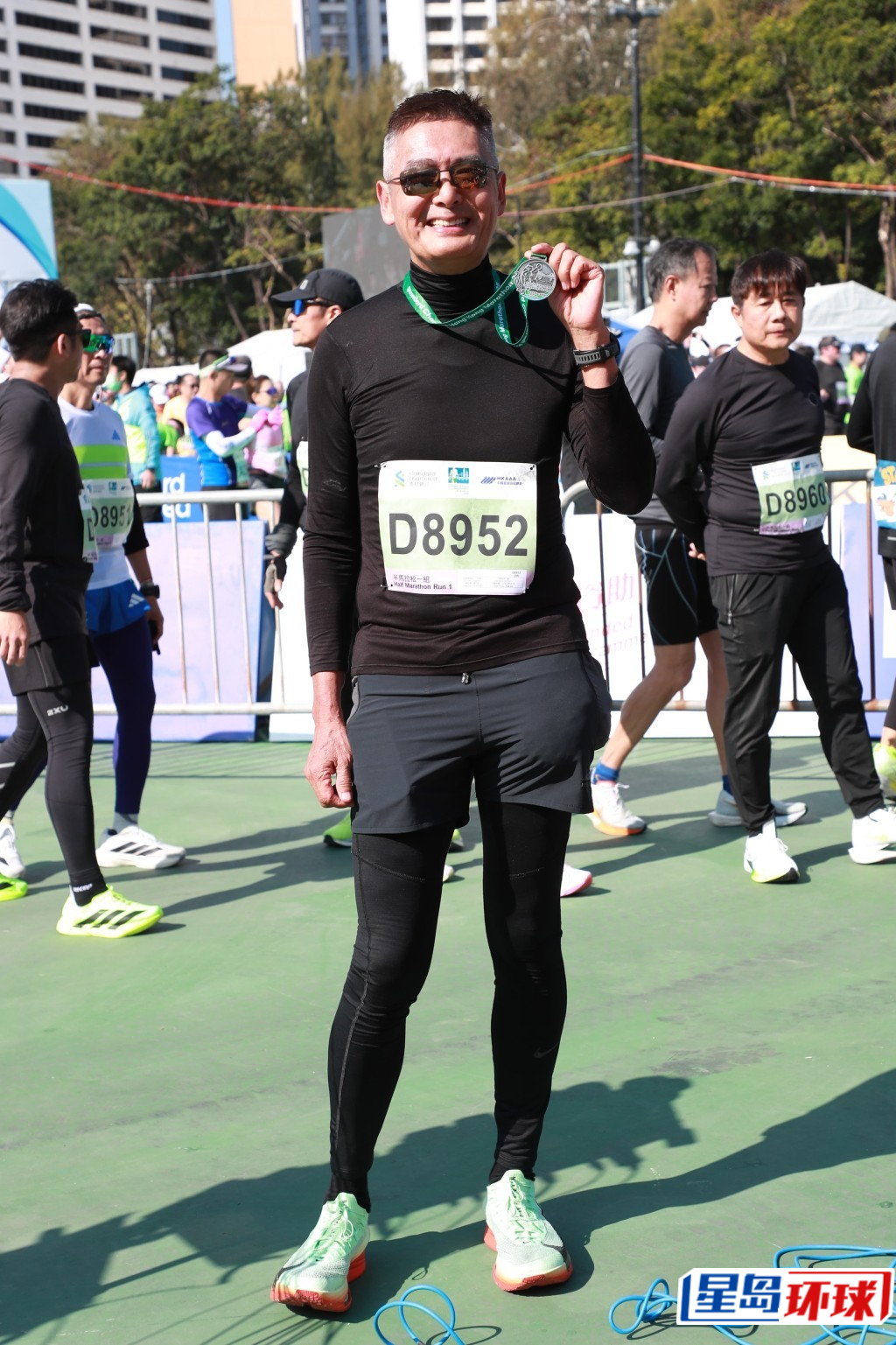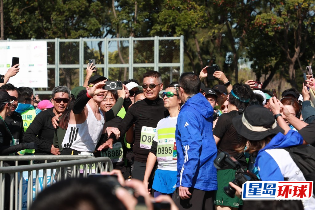 周潤(rùn)發(fā)去年以黑色小背心陣,今早因天氣寒冷,于是周潤(rùn)發(fā)改穿了長(zhǎng)衫、長(zhǎng)褲與及戴了手套,不過(guò)未有影響周潤(rùn)發(fā)的魅力,依然成為全場(chǎng)焦點(diǎn)。周潤(rùn)發(fā)在2023年參加10公里賽事,去年改跑半馬,以2小時(shí)26分秒,比目標(biāo)2小時(shí)15分稍慢,今年以2小時(shí)24分33秒沖線,雖然未能完成目標(biāo),不過(guò)成績(jī)比去年還要好。參與半馬的周潤(rùn)發(fā)被大會(huì)主持形容為“全場(chǎng)最喜歡的跑手”,當(dāng)他沖線后吸引大批市民找他合照,連早早跑完的黃浩然、蔡一智、周家怡等都在一旁等他影合照,很受歡迎。