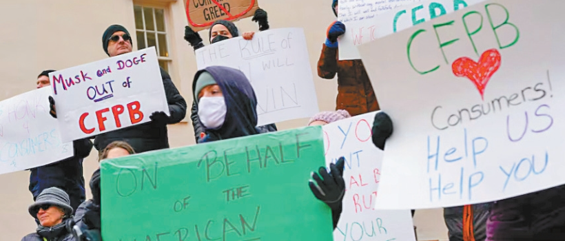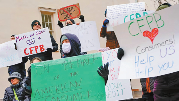 ▲CFPB被新管理層接管及停工后,除引發(fā)部分員工抗議外,國(guó)會(huì)的民主黨人亦強(qiáng)烈反對(duì)。 路透社