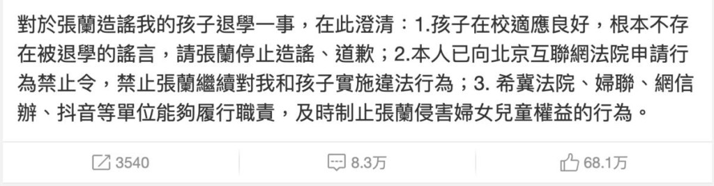 昨日(8日)就連抖音官方也出手,發(fā)聲明宣布張?zhí)m與汪小菲的抖音帳號將被無限期封禁。