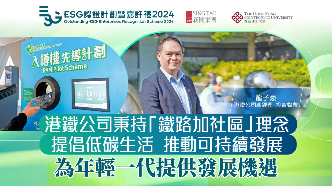 ESG認(rèn)證嘉許|港鐵公司秉持“鐵路加小區(qū)”理念,提倡低碳生活,推動(dòng)可持續(xù)發(fā)展,為年輕一代提供發(fā)展機(jī)遇