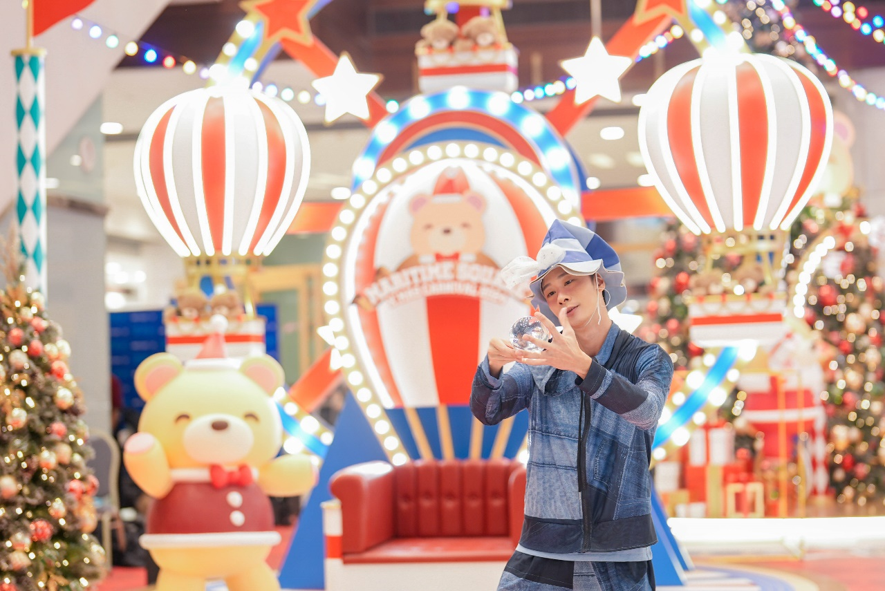 ▲圍方的藝術(shù)品《泰迪火車之旅》是由本地藝術(shù)家創(chuàng)作,吸引不少市民一家大細(xì)前來觀賞打卡。