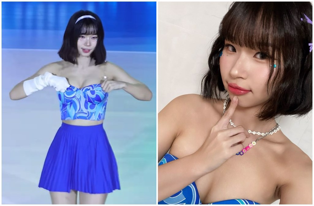 Ruka日前在instagram公開“皮蛋SOLO”在中場(chǎng)時(shí)帶來(lái)的演出,她留著一頭俏麗短發(fā),身穿藍(lán)色馬甲套裝登場(chǎng),只見傲人上圍根本藏不住,不僅露出大半截,還擠出一條深邃事業(yè)線,火辣身材讓人舍不得將視線移開,沒(méi)想到過(guò)程中疑似舞蹈動(dòng)作過(guò)大,導(dǎo)致上半身衣服開始下滑,不過(guò)好在Ruka臨場(chǎng)反應(yīng)快,拉著衣服后又繼續(xù)表演,直到轉(zhuǎn)過(guò)身后,才盡快把衣服喬好,免于在眾人面前露點(diǎn)走光。