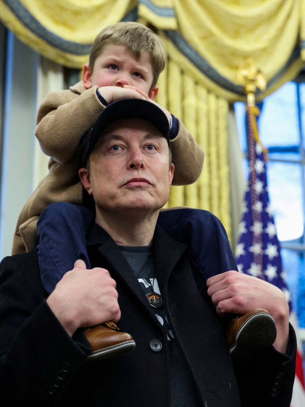 馬斯克攜兒子現(xiàn)身白宮橢圓形辦公室。(路透社)