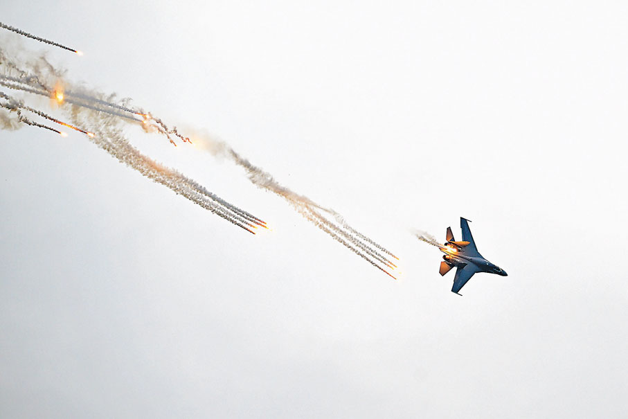 ▲殲-16戰(zhàn)機(jī)發(fā)射熱焰彈。