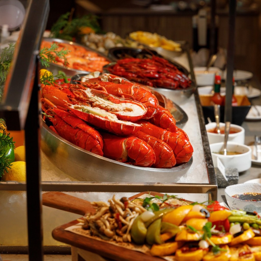Café East設(shè)多個開放式廚房和食物柜枱,每日供應(yīng)新鮮即制的中西佳肴,包括凍海鮮、鐵板燒、爐端燒、喇沙等,還有即場烹調(diào)鑊氣小炒麵食及多達(dá)15款自家制甜品。想要一次品噹各式佳肴的朋友,不妨約上親朋好友到千禧新世界香港酒店吃一頓豐富的自助餐。