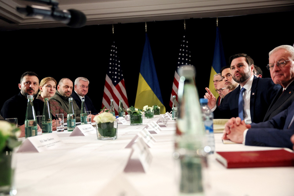 澤連斯基與美國副總統(tǒng)萬斯(JD Vance)率領的代表團14日在慕尼黑安全會議(Munich Security Conference)期間舉行會談,會談結束后雙方并未宣布達成協(xié)議。3名知情人士透露,當天稍早,澤連斯基與美國跨黨派參議員代表團舉行閉門會議,澤連斯基在會議中表達了對美方協(xié)議草案的擔憂,匿名人士表示,澤連斯基“覺得自己被不合理地要求簽署尚未讀過的合約”,該名人士說:“我不認為他喜歡被脅迫‘要不要隨便你’”。