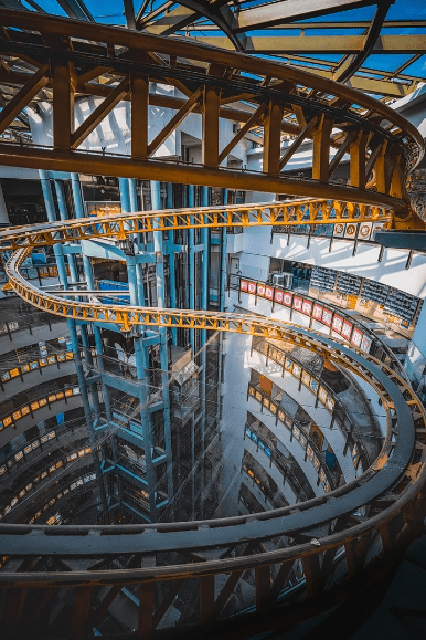 于1994年開幕,位于深水埗的西九龍中心,擁有全港唯一一套室內(nèi)過山車“天龍過山車”,當(dāng)年隨同商場在開幕時(shí)一并啟用,直至2003年才宣布停運(yùn)。不過,圍繞在商場高層的黃色過山車路軌并沒有拆卸,而是保留下來,是西九龍中心的一大特點(diǎn),近日更成為小紅書龍友們的攝影熱點(diǎn),吸引不少網(wǎng)民到場打卡!