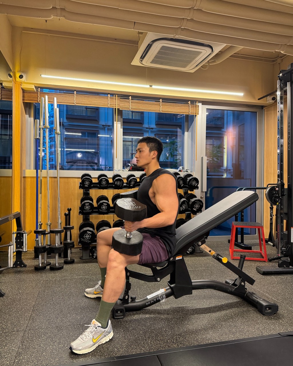 ▲周嘉洛去年在IG分享健身相,見他舉起啞鈴時(shí)二頭肌青筋暴現(xiàn)。
