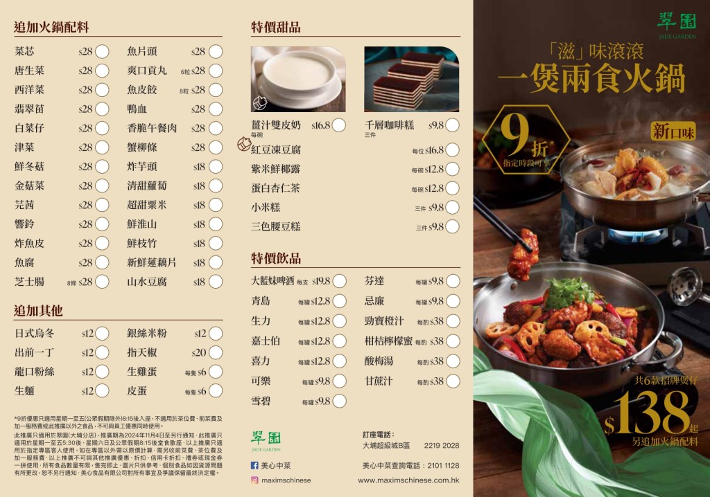 ▲翠園雞煲火鍋兩食優(yōu)惠!$138起指定時(shí)段額外9折。