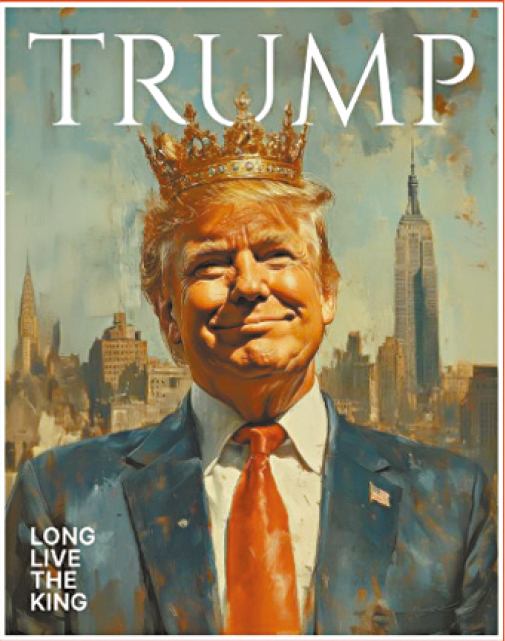 白宮除了轉(zhuǎn)發(fā)帖文外,更在兩大平臺X和Instagram發(fā)布插畫,參考《時代》雜志的封面設(shè)計,但將刊物名稱改為“特朗普”,并配上“國王萬歲”的標題。