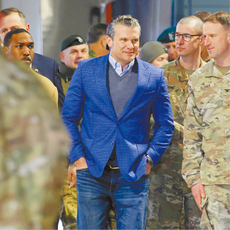 國防部長赫格塞斯(中)已指示五角大樓高層,必須在24日或之前擬定出削減開支的詳細(xì)方案。 路透社