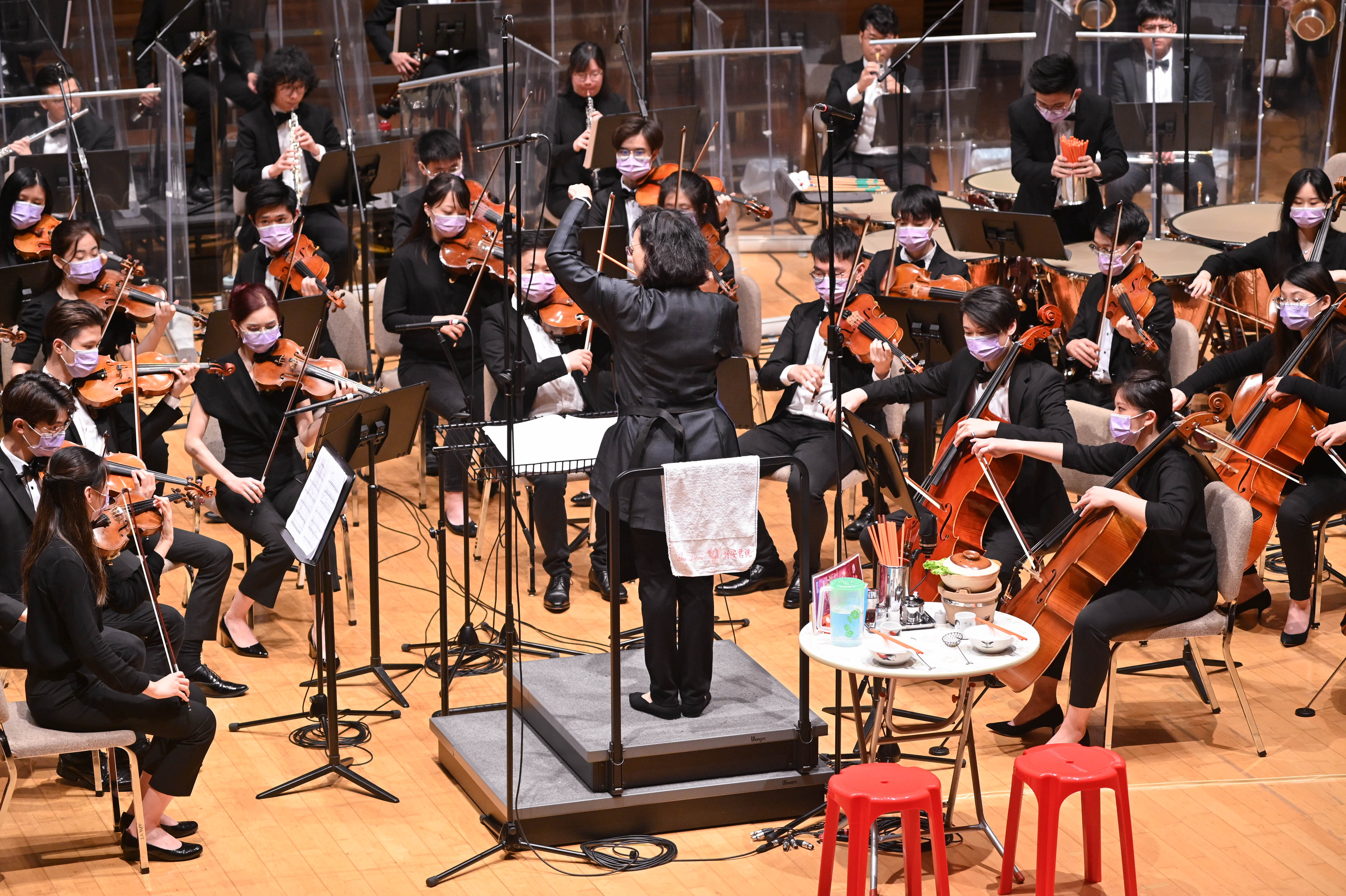 ▲由香港演藝學(xué)院舉辦、太古集團(tuán)贊助的香港特別行政區(qū)成立二十五周年音樂(lè)會(huì)上,演藝交響樂(lè)團(tuán)演奏得獎(jiǎng)作品《大排檔》。