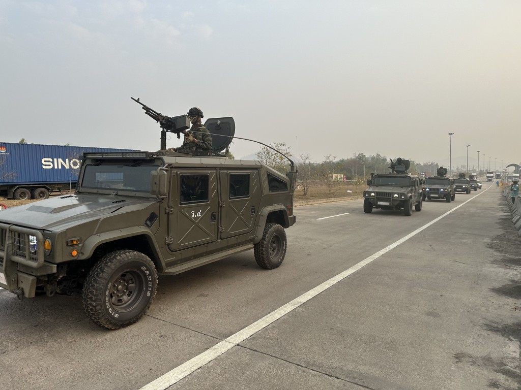 泰國軍車到緬甸邊境接收詐騙園區(qū)遺返人員。