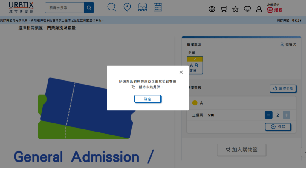 《星島頭條》記者準(zhǔn)時(shí)10時(shí)進(jìn)入售票網(wǎng)站。不過,進(jìn)入網(wǎng)站后卻即時(shí)顯示“排隊(duì)中”,指預(yù)計(jì)等候時(shí)間“多于2小時(shí)”,等候人數(shù)有超過2萬(wàn)人次。記者約15分鐘后成功進(jìn)入購(gòu)票頁(yè)面,頁(yè)面顯示仍馀少量門票,但多次點(diǎn)擊“確認(rèn)”均顯示購(gòu)票失敗。