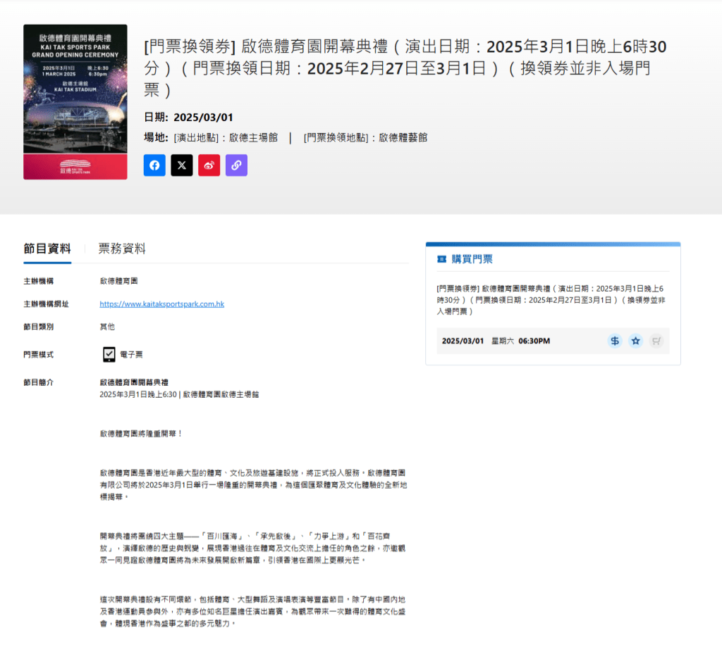 ▲啟德體育園開幕禮門票今早10時(shí)開賣。