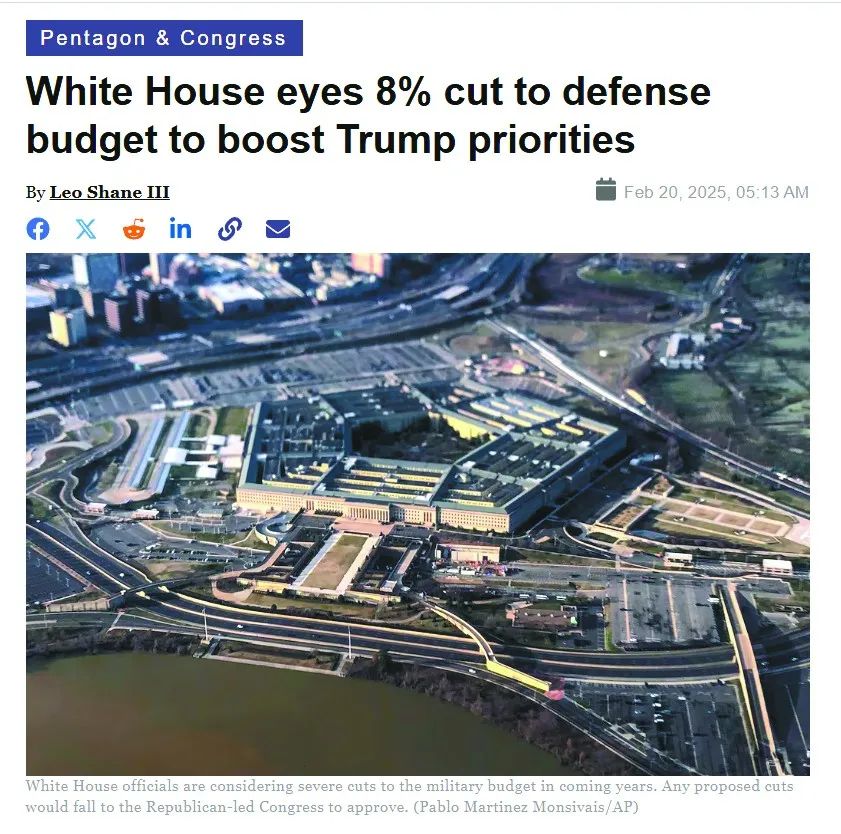 美國彭博社引述赫格塞思18日的一份備忘錄稱,他已指示“五角大樓高層”、作戰(zhàn)司令部、國防部機構、各軍種和文職機構在2月24日之前提交削減軍費的方案。